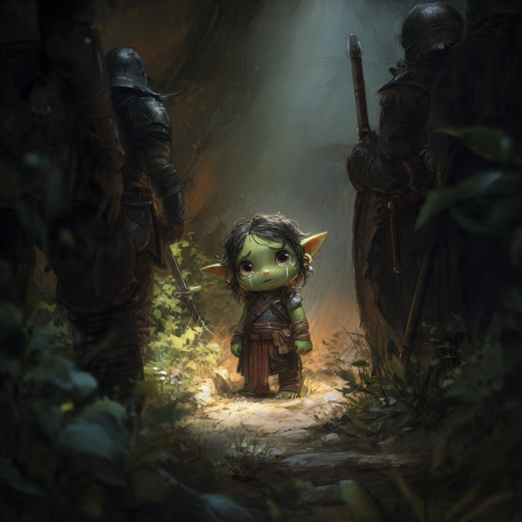 हालांकि, गेम में कुछ हफ़्ते बाद, वे गॉब्लिन गुफा के पास एक रास्ते से वापस जा रहे थे, जहाँ उन्हें जंगल से एक अजीब सी रोने की आवाज़ सुनाई दी। पता चला कि वे एक बेबी गॉब्लिन से टकरा गए थे, जिसने रोते हुए बताया कि उसके माता-पिता को कुछ हफ़्ते पहले खून के प्यासे एडवेंचरर्स के एक गैंग ने मार डाला था।